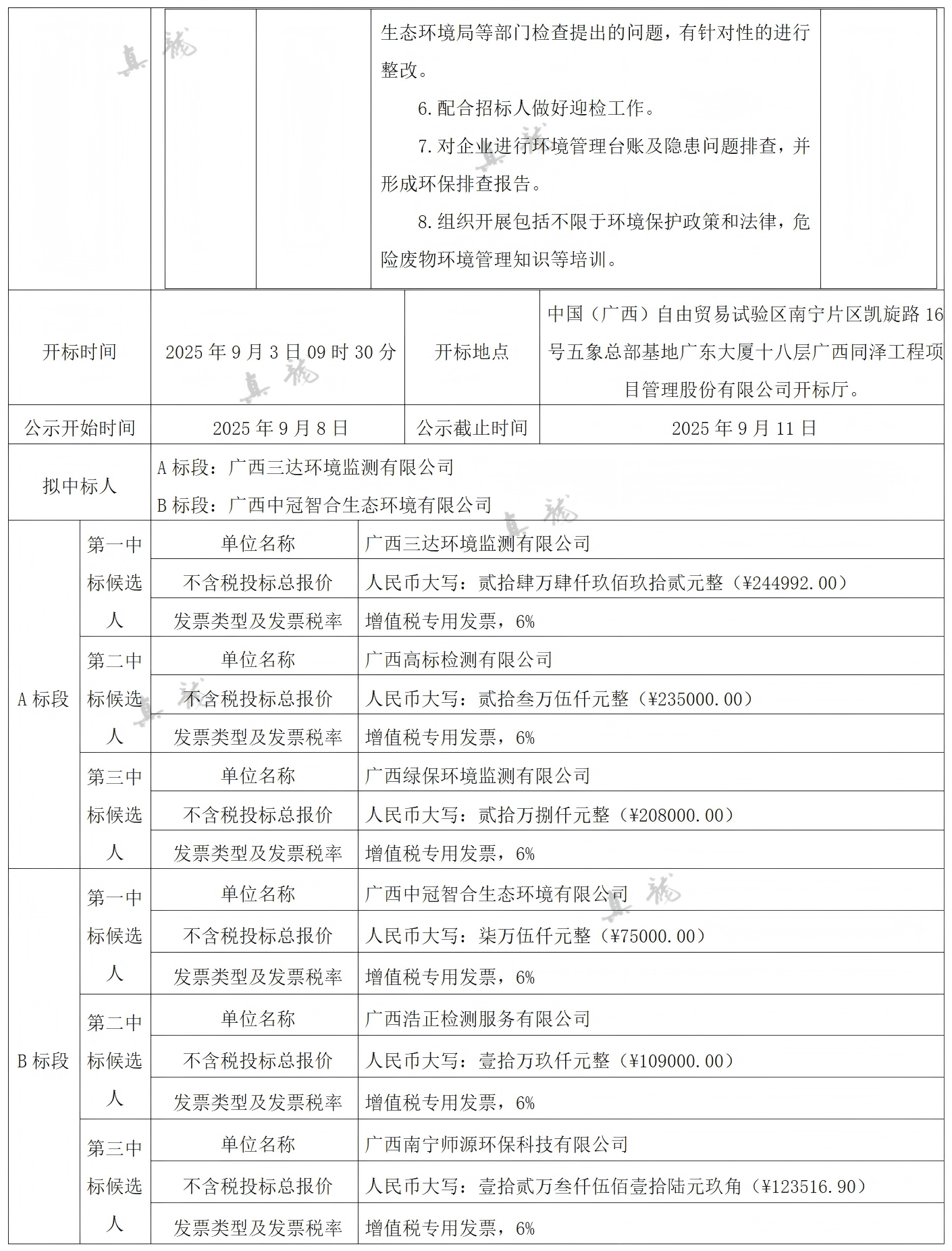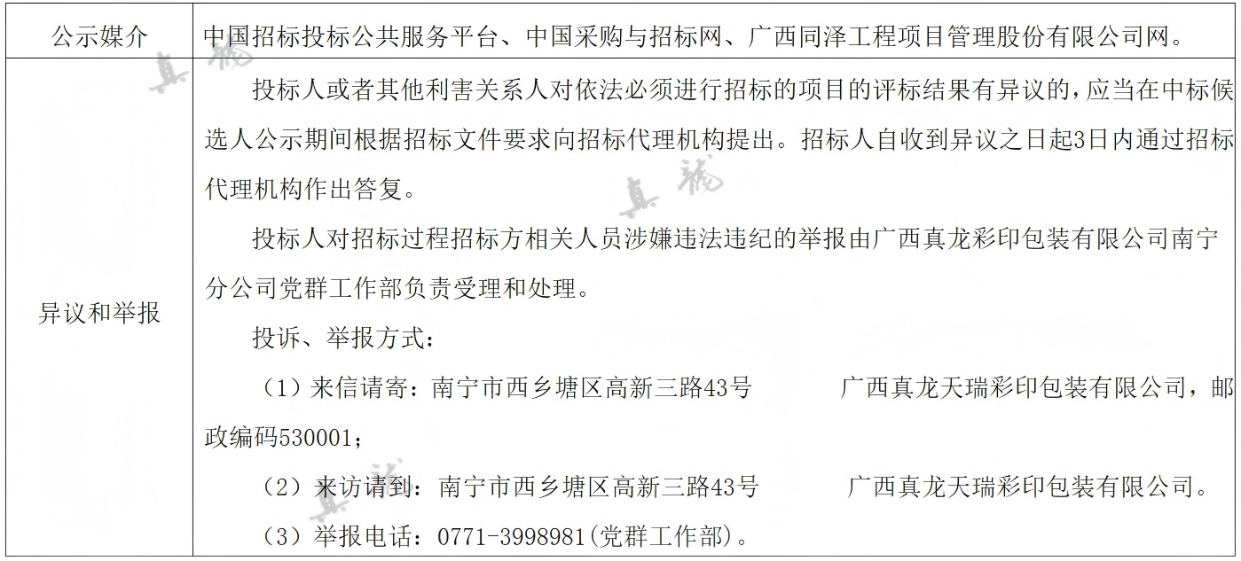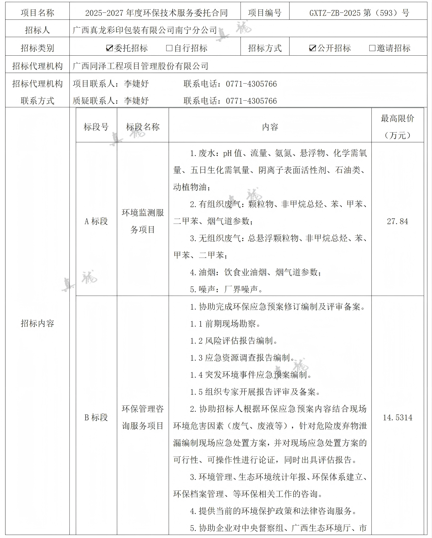 廣西真龍彩印包裝有限公司南寧分公司2025-2027年度環保技術服務委托合同(項目編號:GXTZ-ZB-2025第(593)號)中標候選人公示